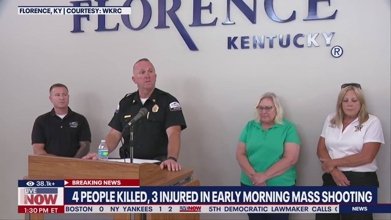 Authorities in Florence, Kentucky are giving an update on a mass shooting. Officials say 4 people are dead and 3 more critically injured after the incident which occurred just before 3AM Saturday morning. Officers then found the suspect dead in a nearby vehicle, apparently from a self-inflicted gunshot wound.