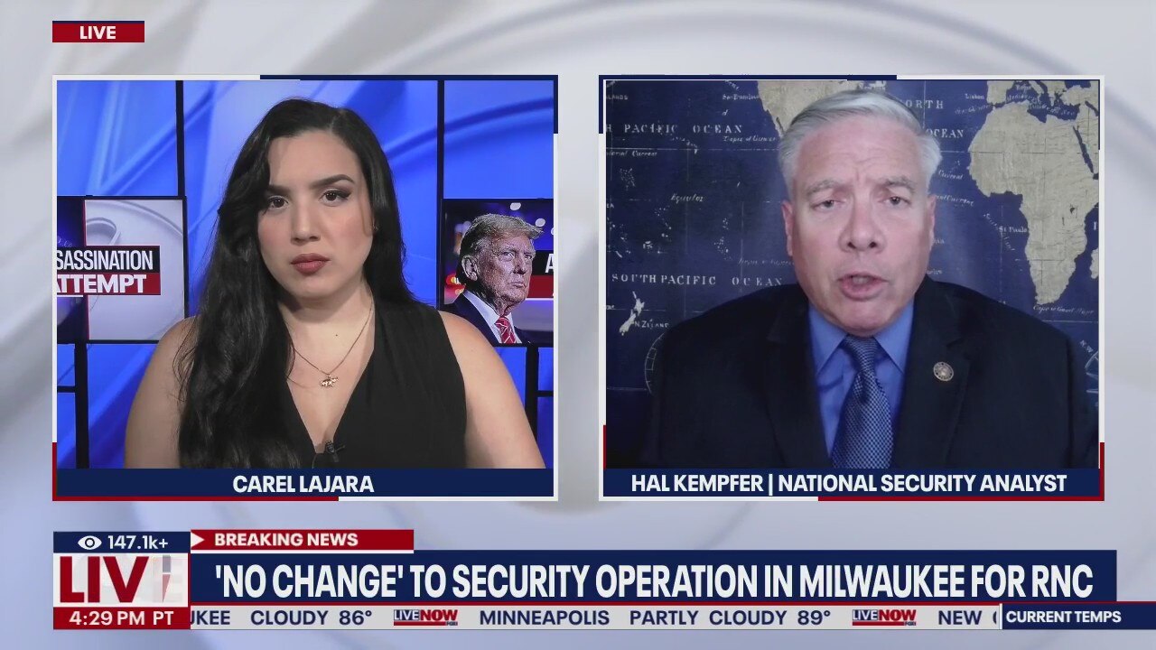 In a joint press conference on Sunday, U.S. Secret Service and local Milwaukee authorities confirmed that the security plans laid out over the last year will hold for the upcoming 2024 Republican National Convention. Former President Donald Trump was shot in the ear mid-rally in Butler, Pennsylvania on Saturday, two others were injured, and one man killed. Trump arrived in Milwaukee Sunday evening, and will be in attendance for the 4-day convention this week. Hal Kempfer joins LiveNOW from FOX.