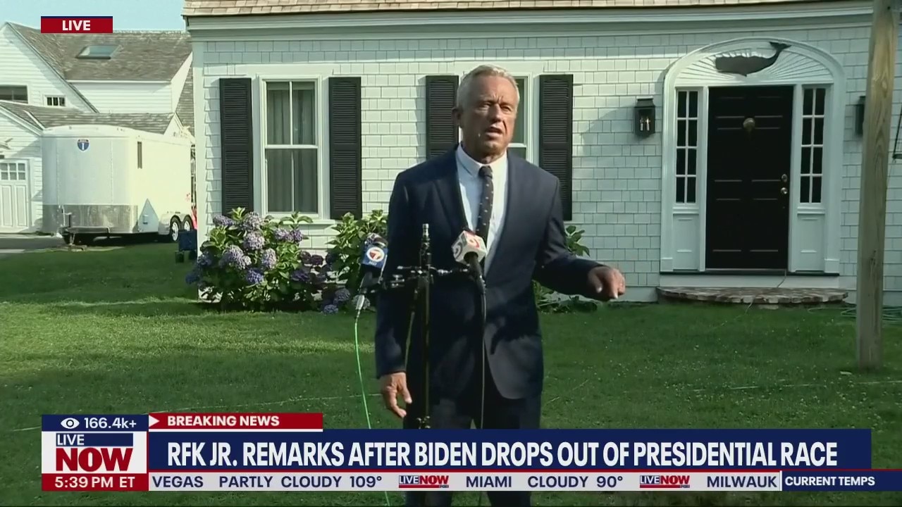 Outside the Kennedy Compound home in Hyannis Port, MA, Robert Kennedy Jr. gave remarks relating to his candidacy and Biden's stepping down in the 2024 election.