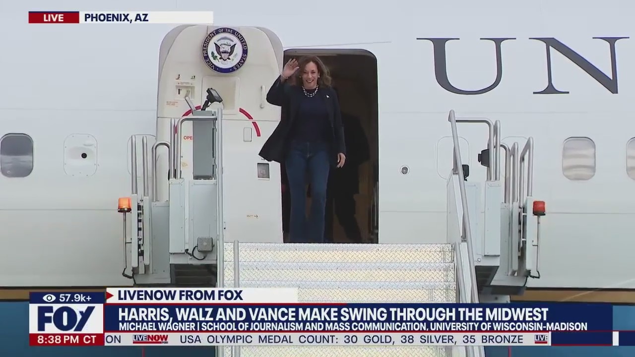 After officially securing the Democratic nomination, Kamala Harris and her newly-named running mate, Minnesota Governor Tim Walz hit the campaign trail in the Midwest. As the two kicked off their campaign together, former President Donald Trump's running mate, JD Vance also hit the trail, running into the Harris campaign on the tarmac in Wisconsin. The Midwest is a key battleground area, and one that Harris shows momentum in, as compared to her predecessor, President Joe Biden. UW-Madison Professor Michael Wagner joins LiveNOW from FOX.