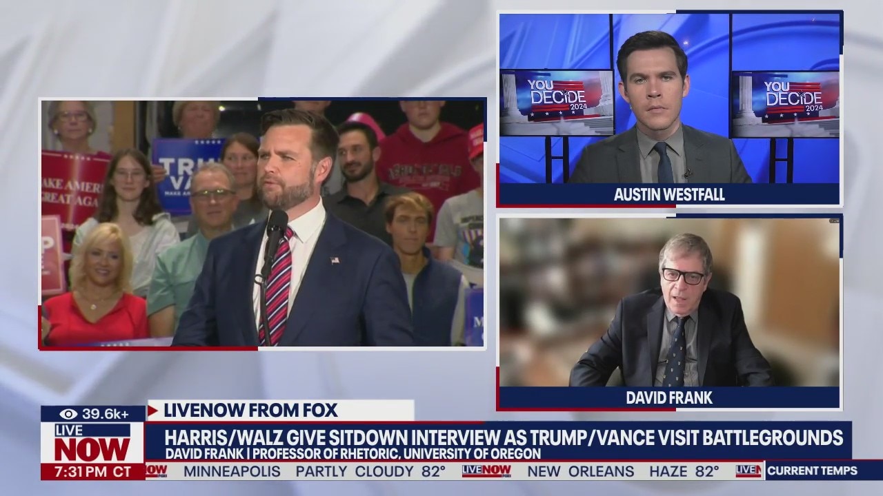 With just two months until the 2024 presidential election, the Harris-Walz campaign and the Trump-Vance campaign are ramping up efforts to secure votes, in what is becoming a very tight race. David Frank, Professor of Rhetoric at the University of Oregon, joins LiveNOW from FOX to explore the current status of the race to the White House.