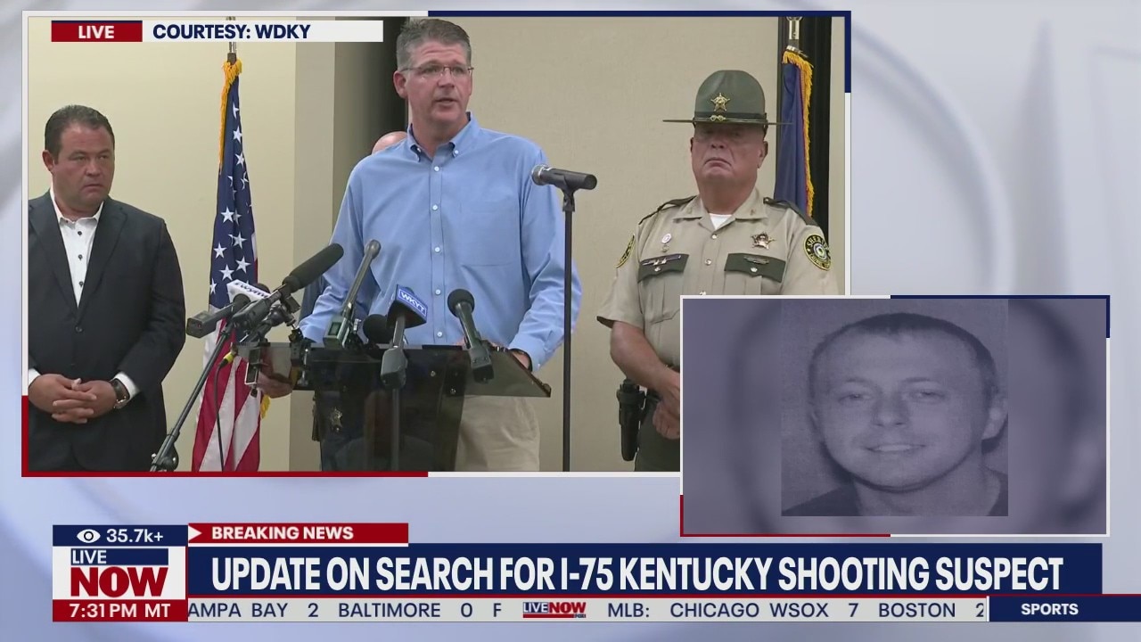 A manhunt remains in effect in Kentucky for a man suspected in the weekend shooting of nine vehicles and wounding of five people on a busy interstate.