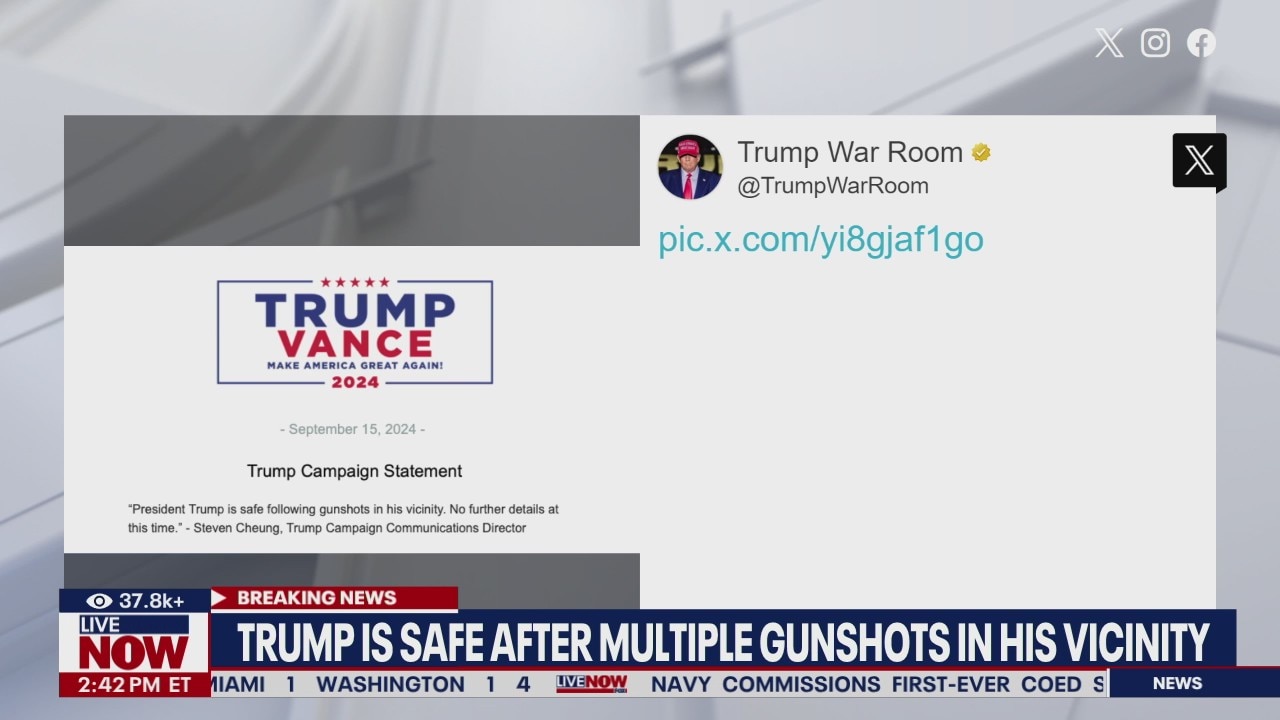 According to his campaign, former President Trump is safe following gunshots in his vicinity in Florida.