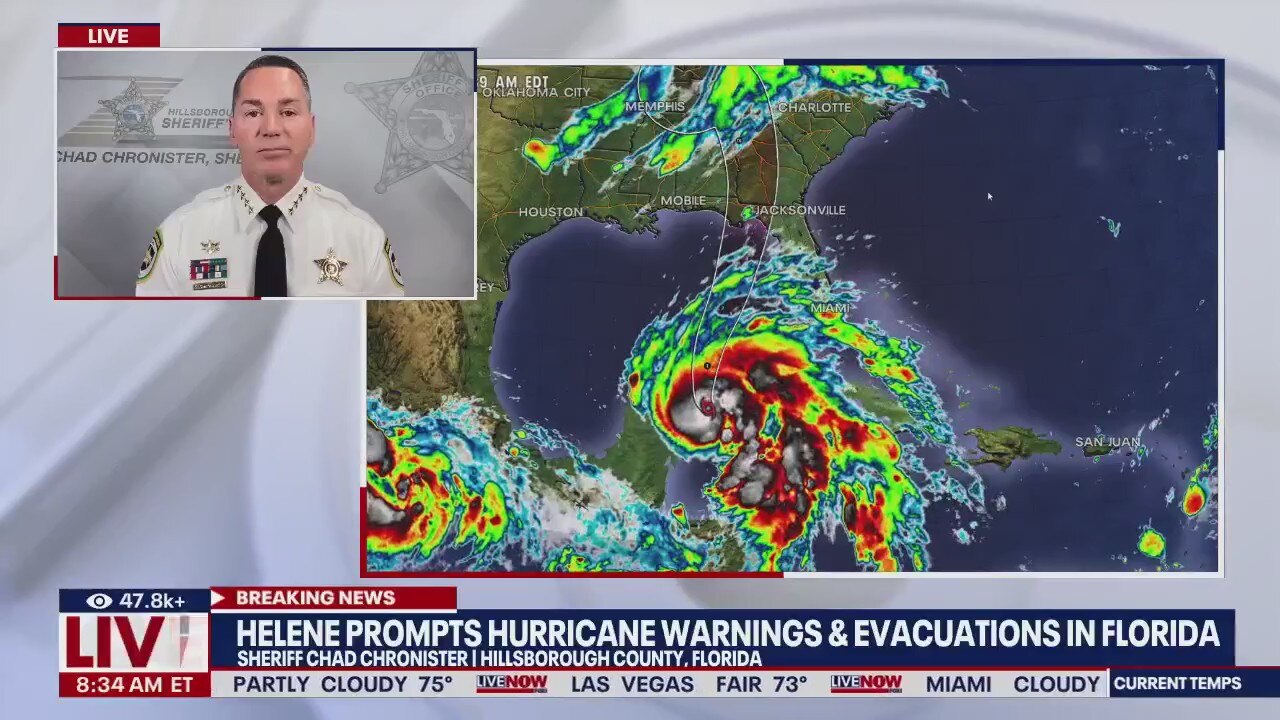 Sheriff Chad Chronister of Hillsborough County, Florida joined LiveNOW from FOX's Josh Breslow to discuss the preparations underway as Helene is expected to impact the Gulf Coast of Florida on Thursday.