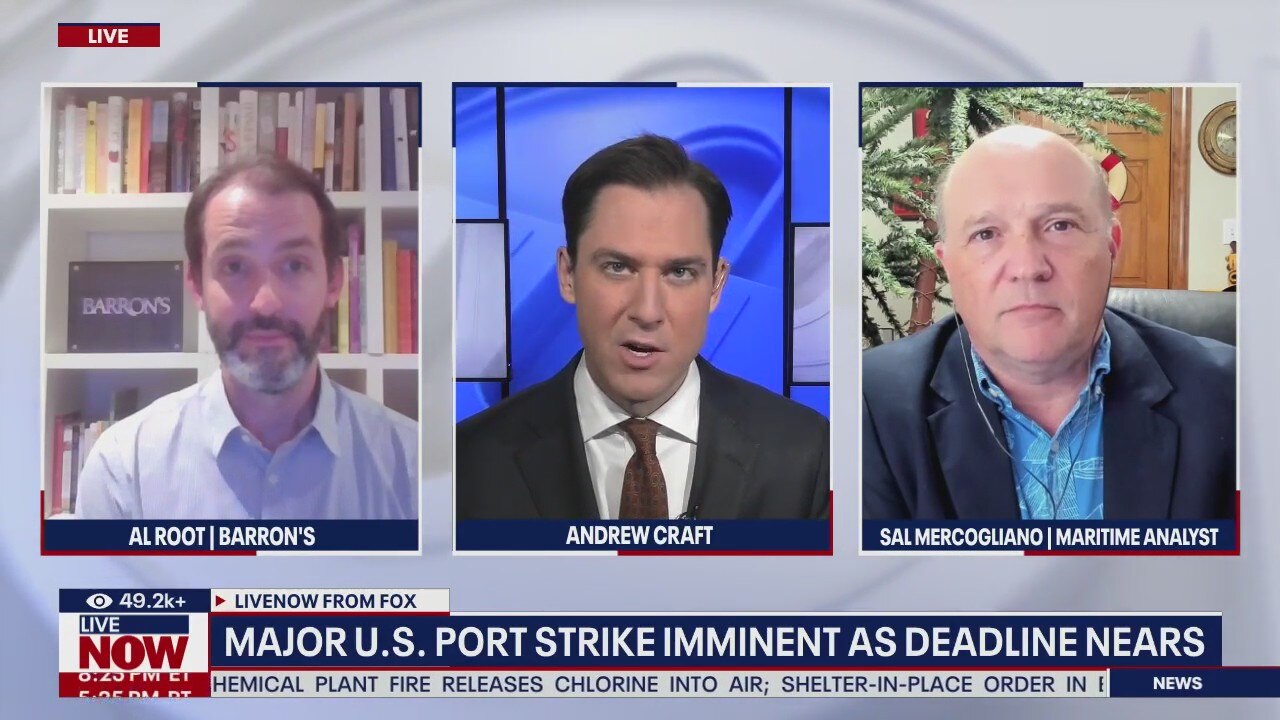 Barron's Associate Editor Al Root and maritime analyst Sal Mercogliano joins LiveNOW's Andrew Craft to discuss the implications of a major U.S. port strike.
