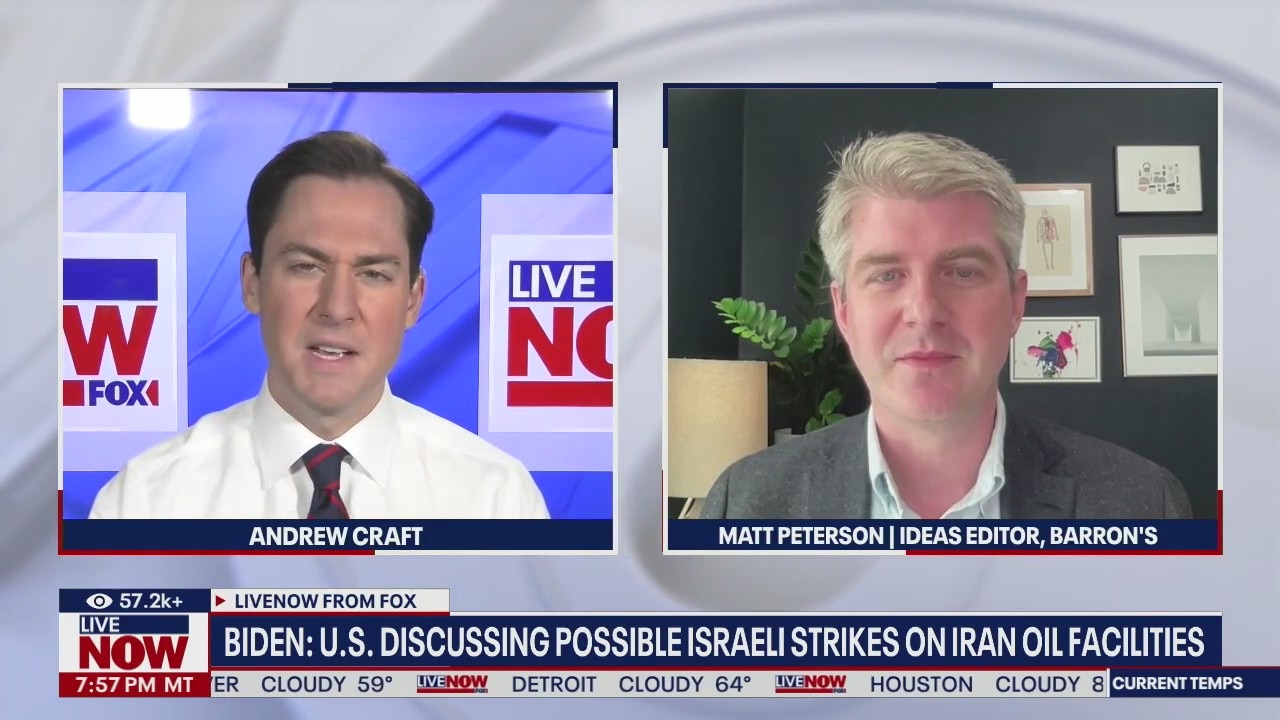 President Biden says the U.S. is discussing possible Israeli strikes on Iran oil facilities. Barron's Ideas Editor Matt Peterson joins LiveNOW's Andrew Craft to discuss how that could impact oil prices.