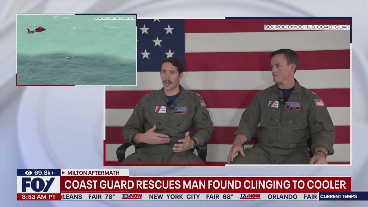 Hurricane Milton left a captain clinging to a cooler as he floated through the water. His rescuers with the US Coast Guard recounted what happened.