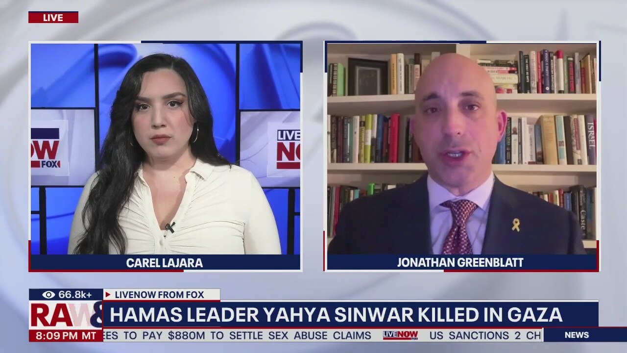 Israel's military confirmed Thursday that they "eliminated" Hamas leader Yahya Sinwar in Gaza. LiveNOW's Carel Lajara breaks down what could be next between Israel and Hamas after Sinwar's death with Jonathan Greenblatt, director of the Anti-Defamation League.