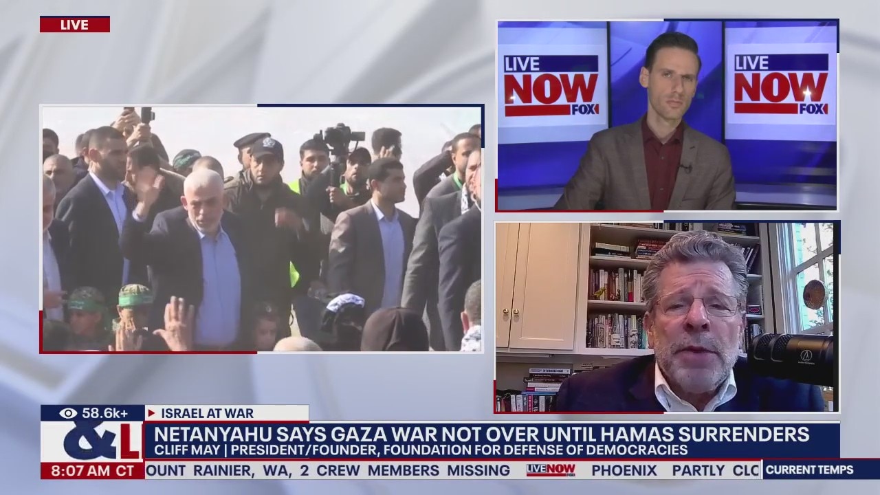 Israeli Prime Minister Benjamin Netanyahu has declared that the war in Gaza is ?not over? following the killing of Hamas leader Yahya Sinwar. Cliff May, the president and founder of the Foundation for Defense of Democracies spoke with LiveNOW from FOX's Josh Breslow about what happens next.