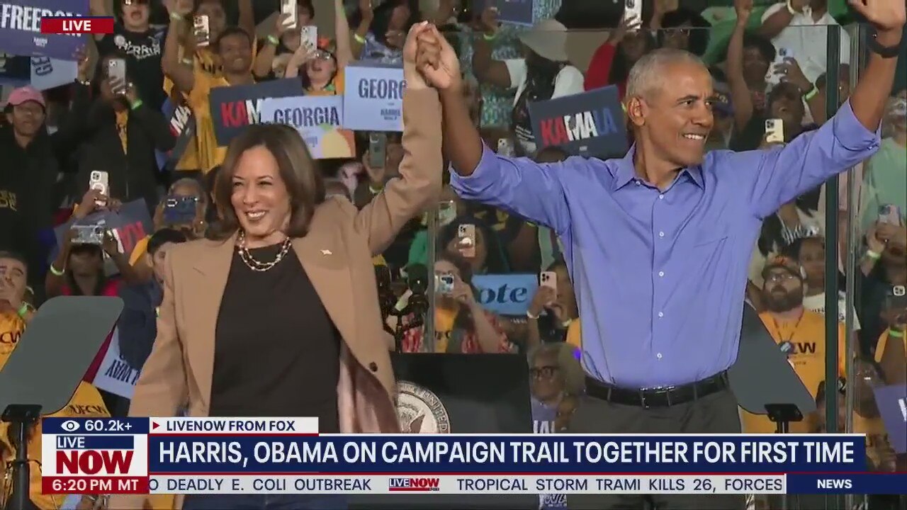 Harris, Obama campaign together for 1st time at GA rally