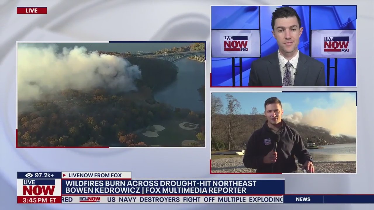 Firefighters across the Northeastern U.S. are fighting wildfires as strong winds and drought conditions continue. LiveNOW's Andy Mac checks in with FOX Multimedia reporter Bowen Kedrowicz, who is on the ground in Greenwood Lake, New York with the latest.