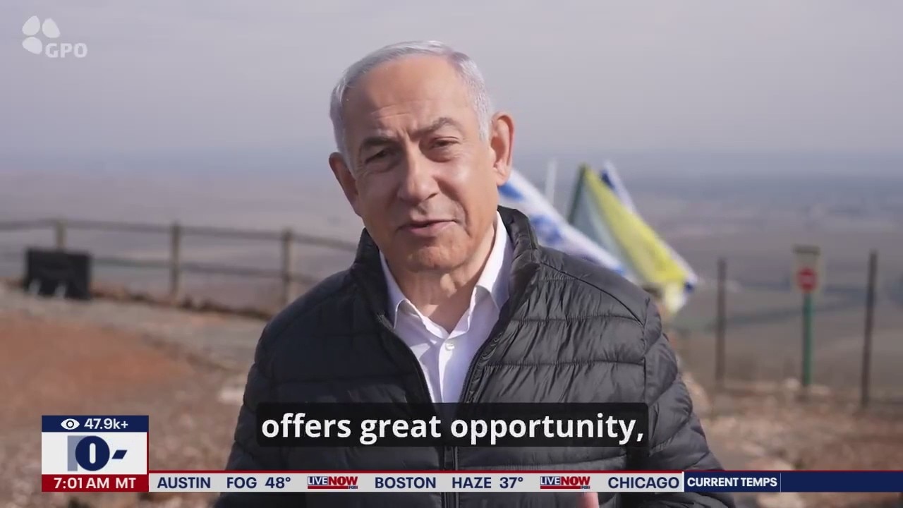 Israeli Prime Minister Benjamin Netanyahu visits Golan Heights on Sunday. Israeli forces have seized a buffer zone in the Golan Heights following Syrian unrest, according to Israel Defense Forces. Director of Foreign Policy at JINSA, Jonathan Ruhe, joins LiveNOW from FOX to talk about Israel deploying forces in buffer zones after the Syrian government collapsed.
