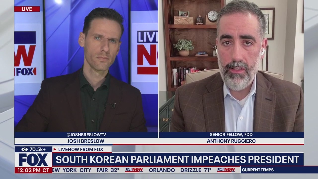 South Korea's parliament has voted to impeach President Yoon Suk Yeol over his martial law decree. LiveNOW from FOX's Josh Breslow spoke with Anthony Ruggiero, senior fellow at the Foundation for the Defense of Democracies, to break down what comes next as President Yoon has vowed to "never give up."