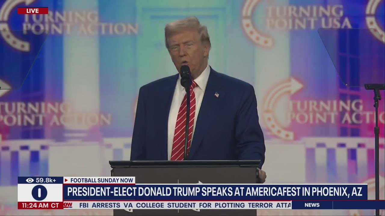 President-elect Donald Trump delivered remarks at AmericaFest 2024 in Phoenix, Arizona. Trump discussed his plans for day one of his presidency. Trump also touched on the Russia-Ukraine war and the ongoing border crisis.