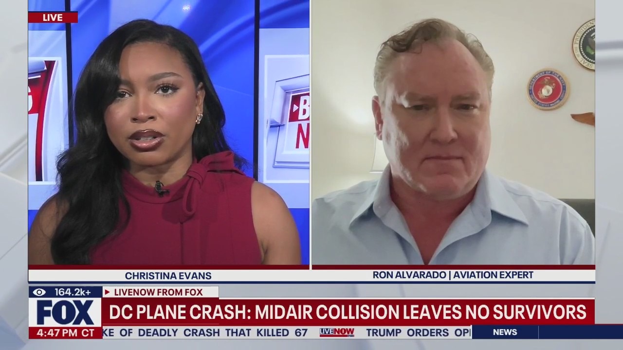 A midair collision between an Army helicopter and an American Airlines flight near Washington Reagan National airport killed all the people aboard the two aircraft. Ron Alvarado, an aviation expert, joins LiveNOW's Christina Evans to discuss the potential causes of the collision.