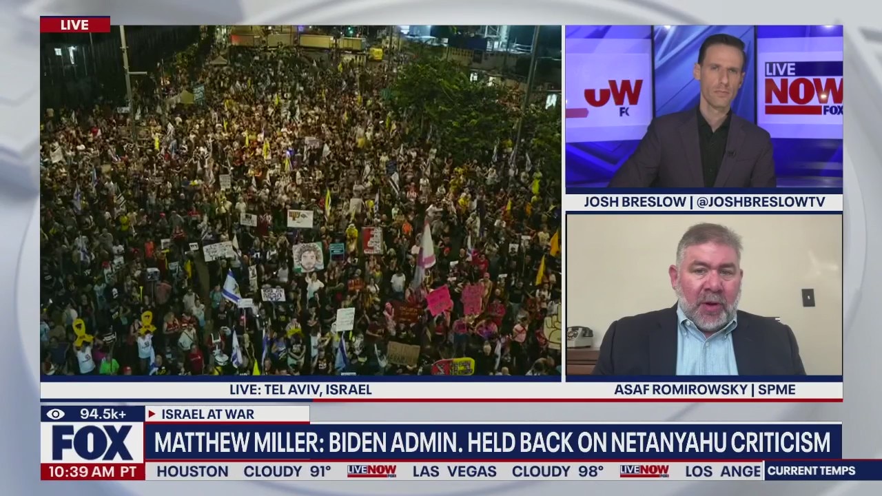 Former U.S. Department Spokesperson Matthew Miller is now saying that the Biden administration wanted to publicly express its disapproval of how Israeli Prime Minister Benjamin Netanyahu was handling ceasefire and hostage negotiations amid the war with Hamas. During an interview with Israeli media, Miller said "There were times that we very much wanted to go public and make clear that we thought the prime minister was being completely intransigent and making it tougher to get a deal." This comes as Israeli forces continue to increase their ground operations and organizations warn of an increased risk of famine in Gaza. LiveNOW from FOX's Josh Breslow spoke with Dr. Asaf Romirowsky, executive director at Scholars for Peace in the Middle East, to discuss the latest developments.