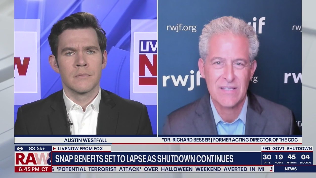 SNAP benefits are set to lapse on Saturday as the government shutdown continues into a new month. Former acting director of the CDC, Dr. Richard Besser, joins LiveNOW's Austin Westfall to discuss what this means for Americans and how lawmakers could respond in the coming days.
