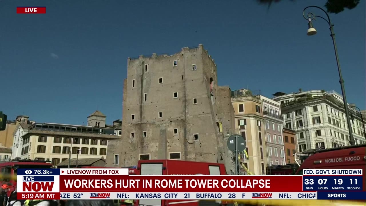A worker was hospitalized after the partial collapse of a medieval tower in central Rome near the Colosseum.