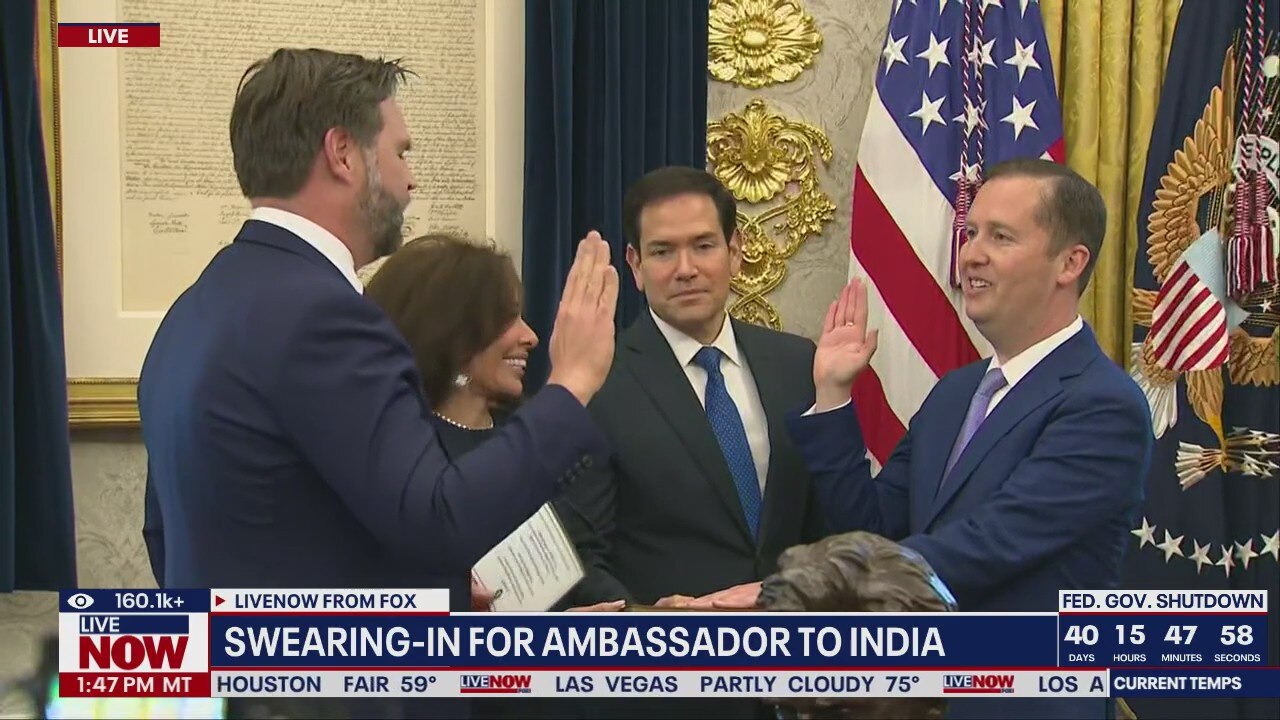 The new U.S. ambassador to India was sworn in during a ceremony in the Oval Office on Monday afternoon. Sergio Gor was sworn into his new role by Vice President JD Vance, with President Trump, Secretary of State Marco Rubio, U.S Attorney Jeanine Pirro and Erika Kirk in attendance. Trump then took questions from reporters.