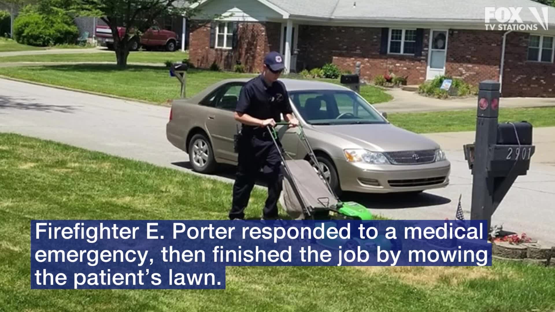 Firefighter mows lawn after saving a patients life