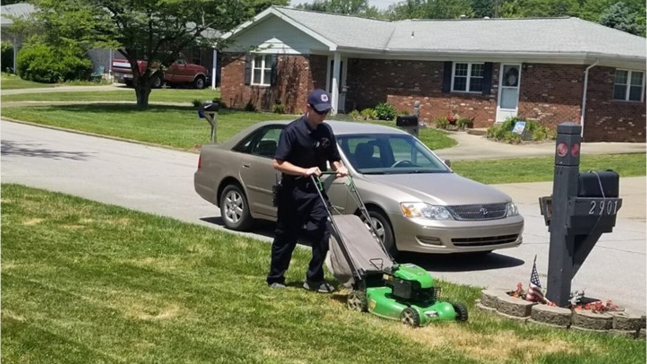 Firefighter mows lawn after saving a patients life
