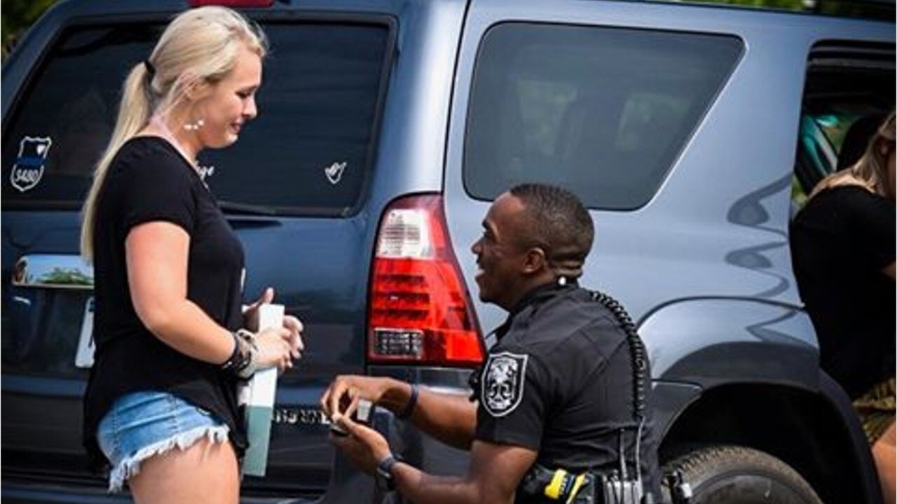 'Surprise of her life': Police officer pulls girlfriend over in traffic stop to propose