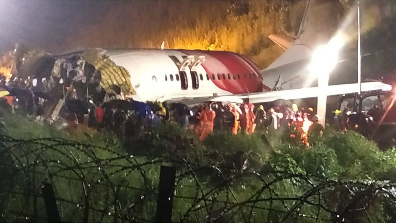 An Air India Express flight with 190 people on board skidded off a runway and split in two while landing Friday in heavy rain in southern India.