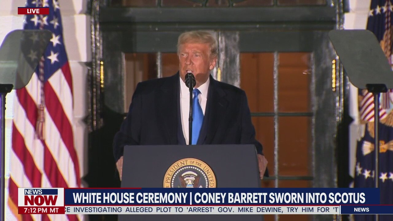 President Donald Trump speaks at Amy Coney Barrett's confirmation ceremony