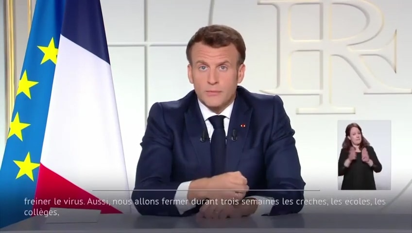 French President Emmanuel Macron announced a nationwide closure of schools for at least three weeks, in a bid to fight rising COVID-19 cases.