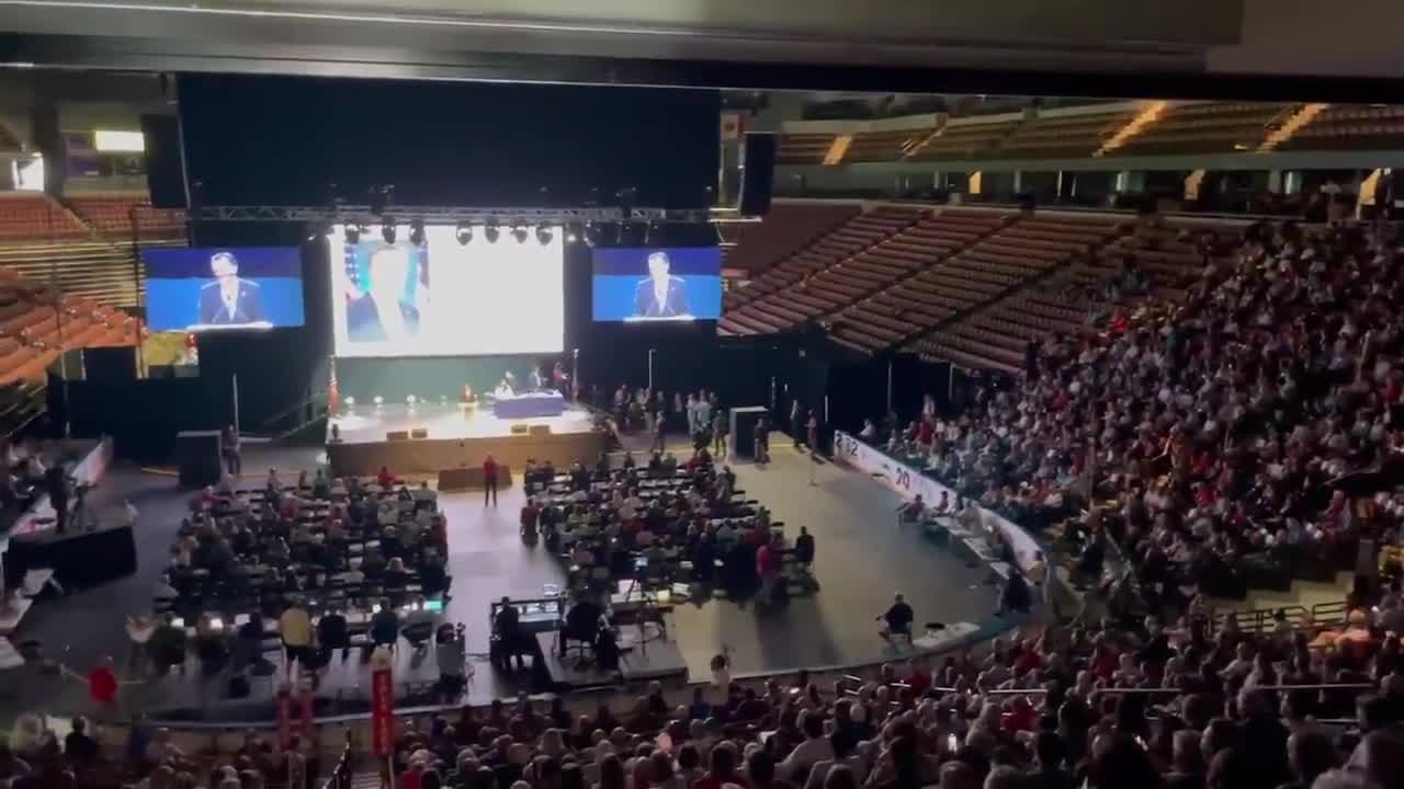 Utah Republicans booed Sen. Mitt Romney but ultimately rejected a motion to censure him for his votes at President Donald Trump's impeachment trials. (Credit: George Bekmezian via Storyful)