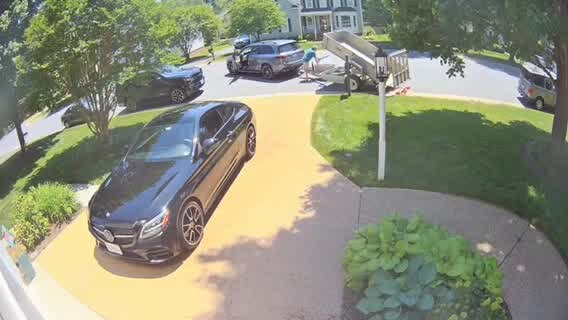 Home-surveillance video showed a father unloading 80,000 pennies into his ex-wife's yard to pay off his child support. (Credit: Avery Sanford via Safe Harbor)