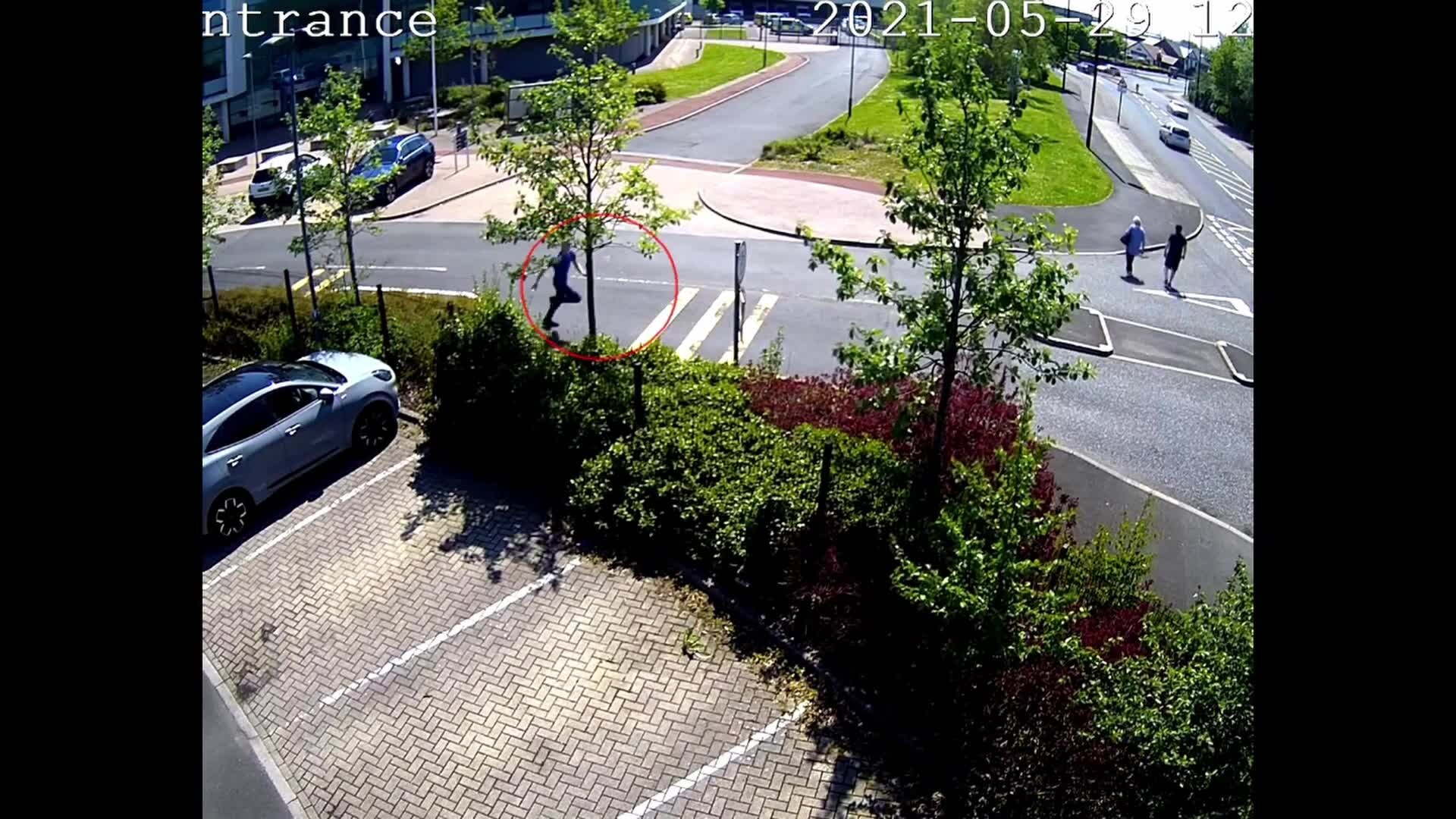 CCTV captured the moment a man escaped from a prison van outside a police station in North Tyneside, England, on May 29. (Credit: Northumbria Police via Storyful)