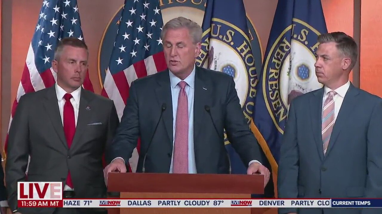 House Minority Leader Kevin McCarthy holds a press conference after House Speaker Pelosi rejected two Republicans tapped to serve on Jan. 6th commission.