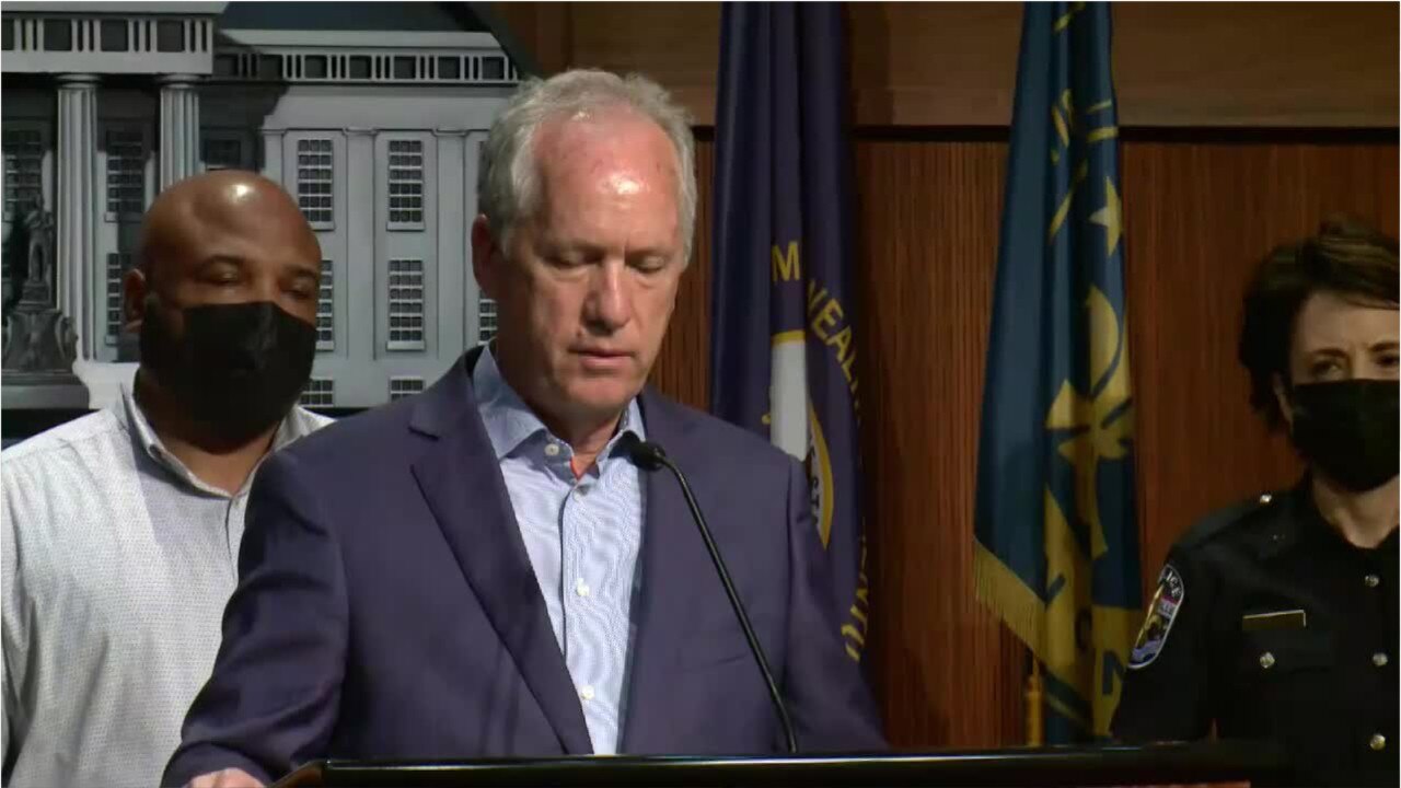 Louisville Mayor Greg Fischer discussed a drive-by shooting at a bus stop in the city on Sept. 22, 2021.