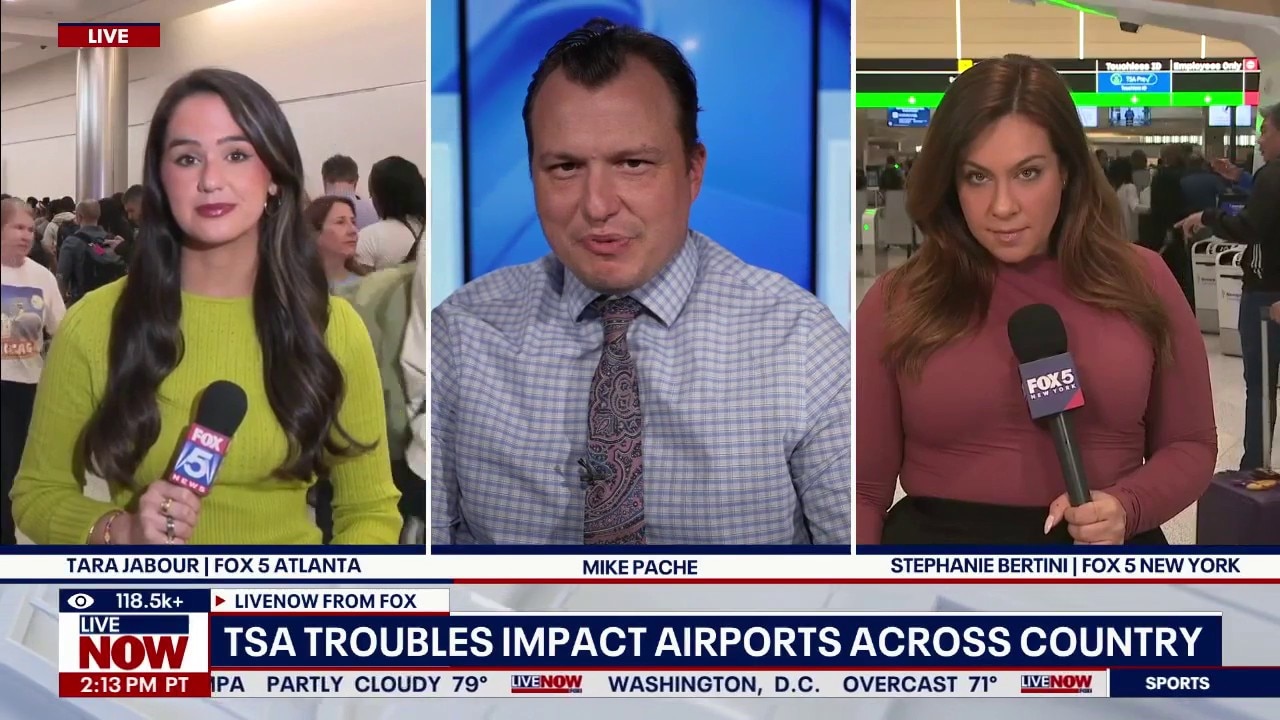 FOX 5 Atlanta's Tara Jabour and FOX 5 New York's Stephanie Bertini joins LiveNOW's Mike Pache to discuss air travel disruptions across U.S. airports as the DHS shutdown continues.