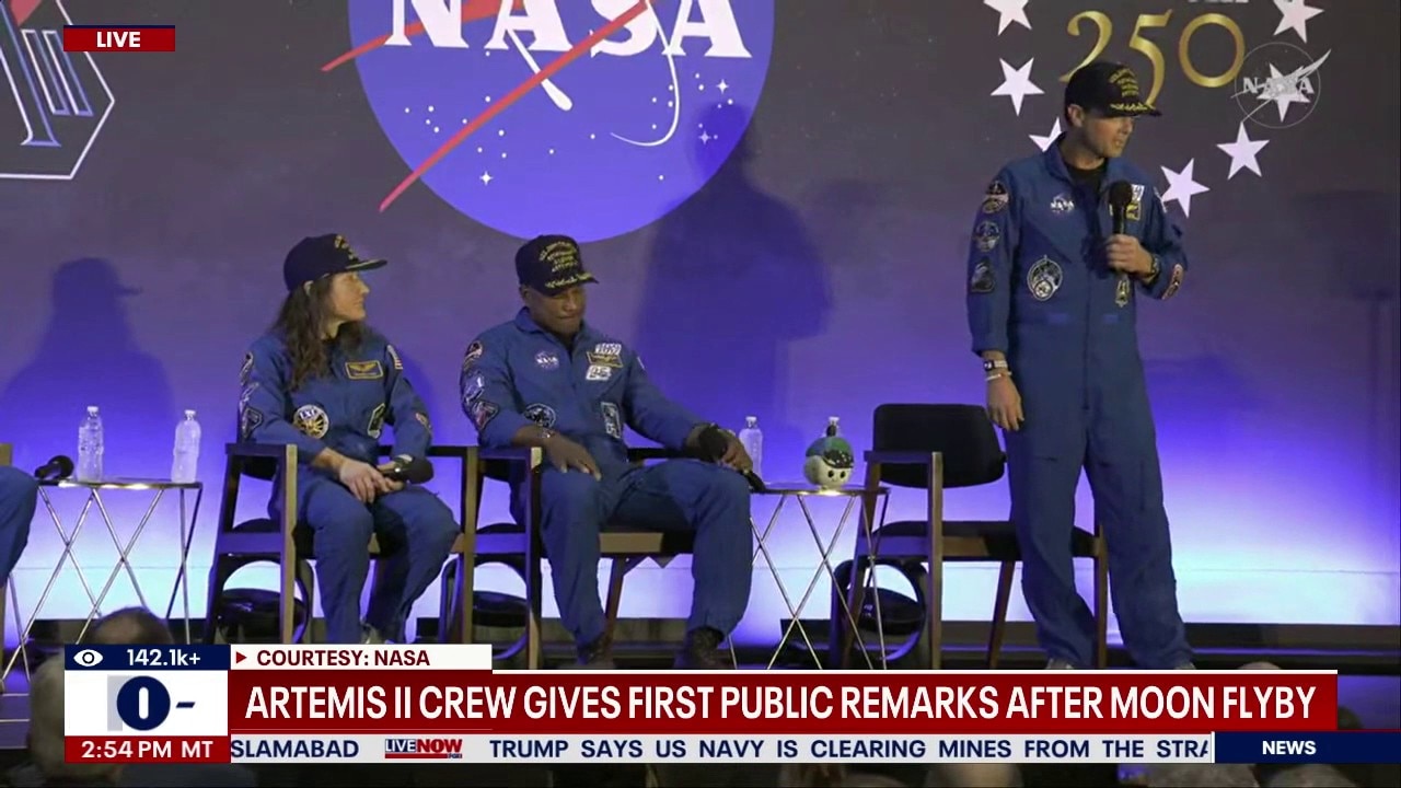 Artemis II crew gives remarks after moon mission