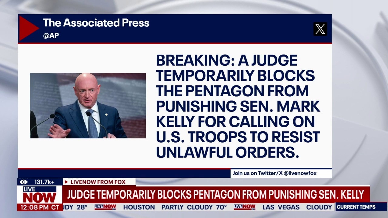 A federal judge blocked the Pentagon from punishing Senator Kelly. Kelly posted on X: "Today a federal court made clear Pete Hegseth violated the constitution when he tried to punish me from something I said. This is a critical moment to show this administration they can't keep undermining."
