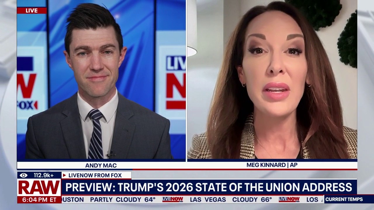 LiveNOW’s Andy Mac is speaking with Meg Kinnard, a national politics reporter for the Associated Press, as President Donald Trump prepares for the first State of the Union Address of his second term. LiveNOW from FOX will have special coverage leading up to Trump’s address and then afterward, including the Democrats’ response. The speech comes as Trump continues to focus his attention on foreign policy during his second term. Trump will also likely talk about issues he believes he has taken care of on the southern border.