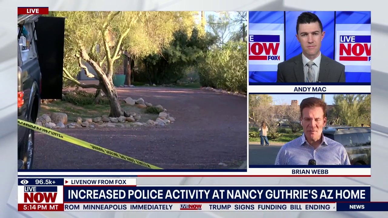 FOX 10 Phoenix reporter Brian Webb joins LiveNOW's Andy Mac to discuss the increased police activity at Nancy Guthrie's home in Arizona.