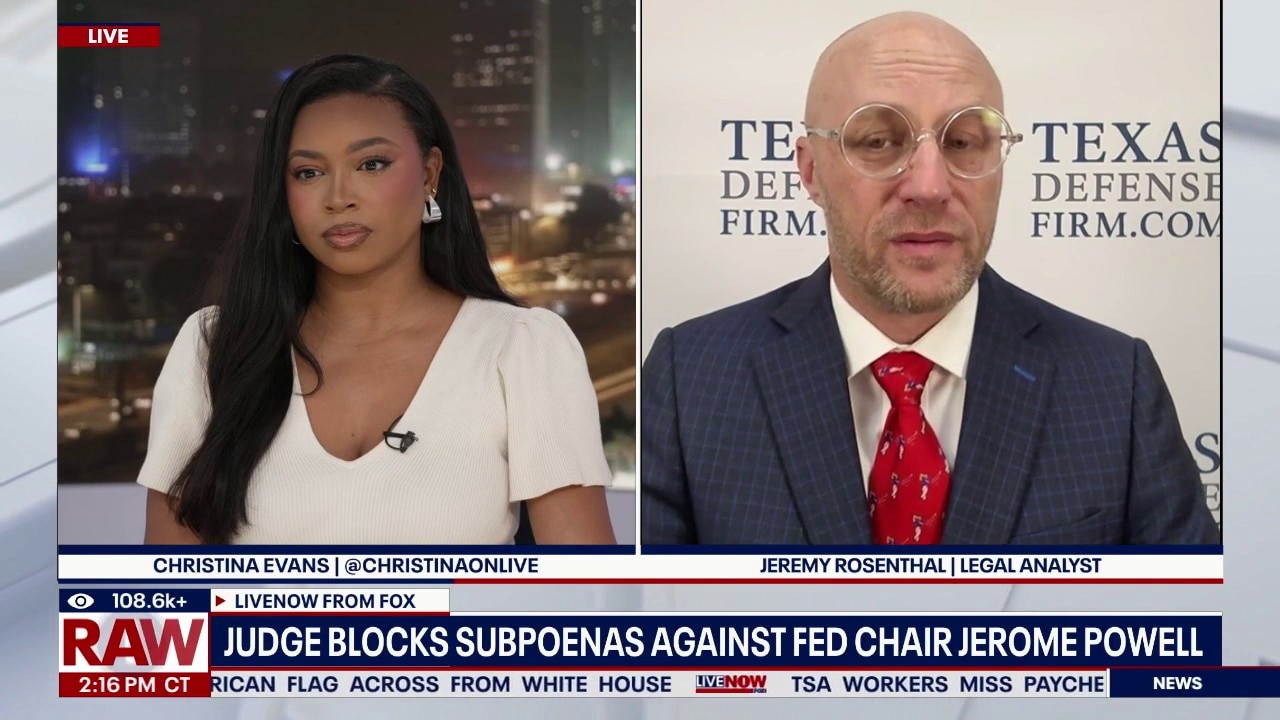 A federal judge on Friday quashed Justice Department subpoenas issued to the Federal Reserve in January, a severe blow to an investigation that has already attracted strong criticism on Capitol Hill. The investigation into testimony last June by Chair Jerome Powell about a $2.5 billion building renovation has also delayed Senate consideration of Kevin Warsh, President Donald Trump’s pick to replace Powell when his term ends May 15. Legal analyst Jeremy Rosenthal joined LiveNOW's Christina Evans to discuss the case.