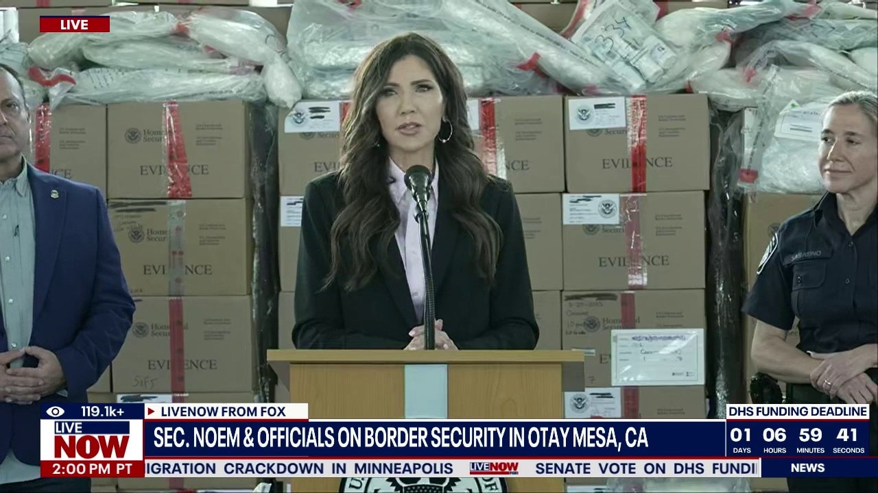 We are hearing from United States Secretary of Homeland Security Kristi Noem who spoke in Otay Mesa in California on Thursday. Secretary Noem highlighted the Trump Administration’s border security and drug-seizure efforts during her remarks. Customs and Border Protection officials joined Noem at the press conference where she was asked about recent operations conducted by federal law enforcement officials in Minnesota. This comes as Border Czar Tom Homan announces the Trump administration will end the current ICE surge in Minnesota after reaching agreements with local authorities.