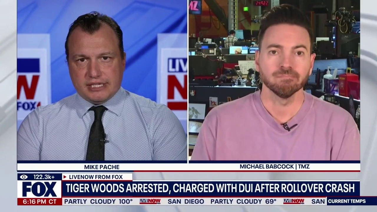 TMZ's Michael Babcock joined LiveNOW's Mike Pache to discuss the latest details surrounding Tiger Woods' arrest after a rollover crash in Jupiter, FL.
