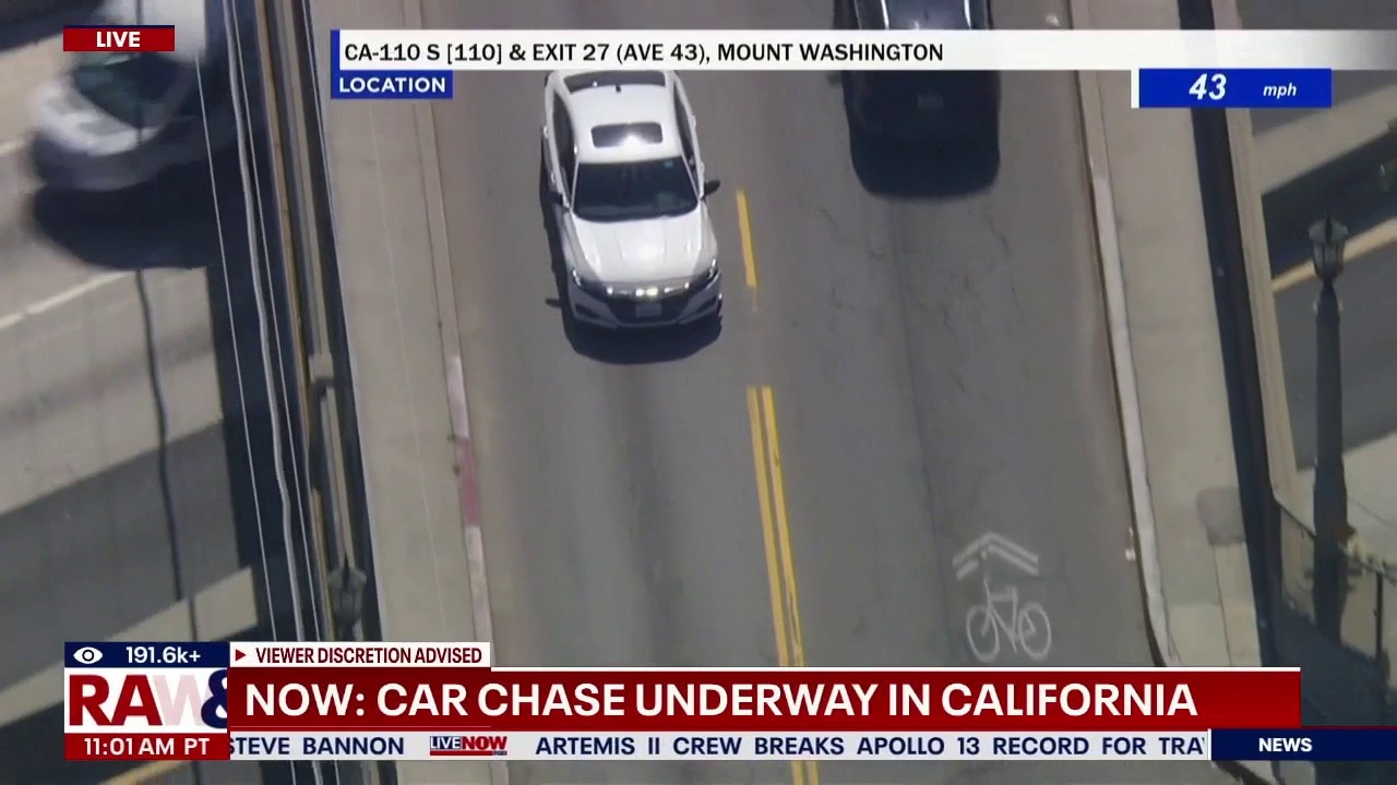 Earlier today we watched as a man accused of violating a retraining order connected to a domestic violence incident was tracked by the Los Angeles Police Department. SkyFOX was overhead as the suspect drove on side streets through the city. According to our partners at FOX 11 Los Angeles, the suspect at one point was seen getting out of his vehicle in the Lincoln Heights area to grab what appeared to be an alcoholic beverage from his trunk. LiveNOW’s Ryan Schmelz was watching live as the high-speed pursuit suspect was taken into custody in LA on Tuesday.