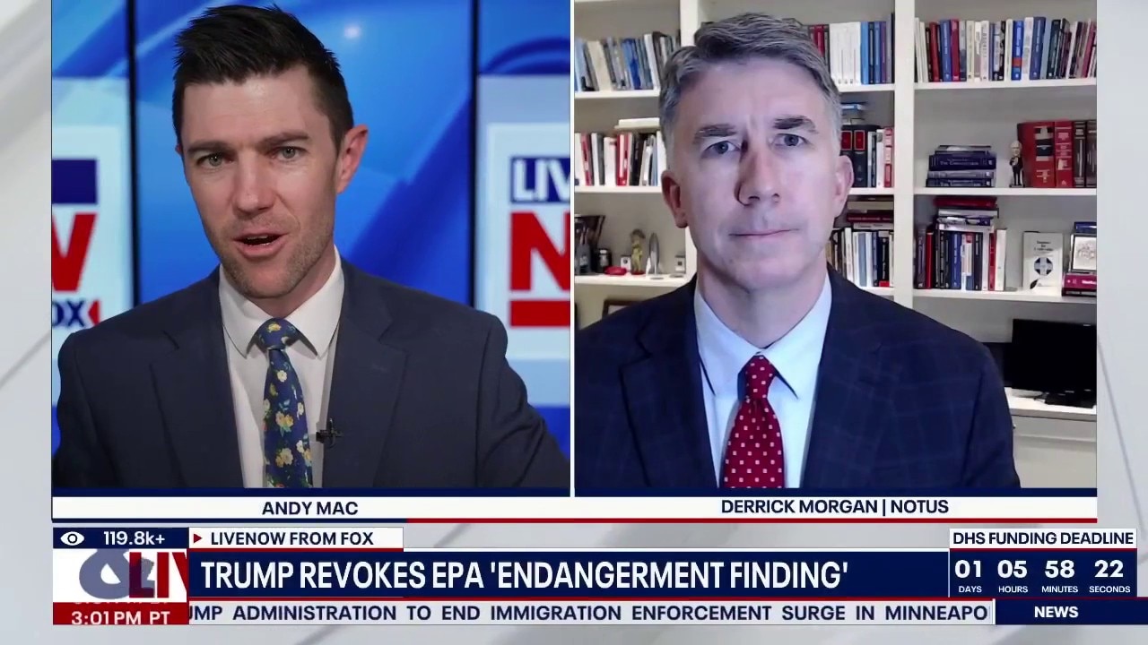 NOTUS Vice President Derrick Morgan joins LiveNOW's Andy Mac to break down the Trump administration's announcement Thursday that revokes the Environmental Protection Agency's Obama-era Endangerment Finding.