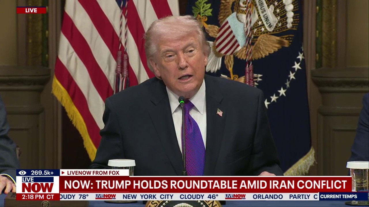 President Donald Trump met with tech leaders amid ongoing strikes on Iran. Trump spoke as U.S. forces ramp up strikes in the Middle East.