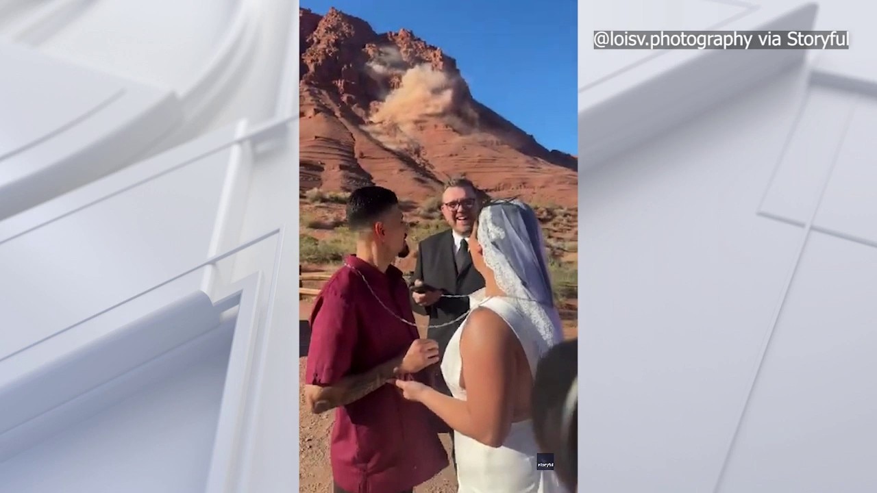 A couple who eloped in the Mojave Desert had an unexpected moment during their wedding, when a rockslide suddenly came crashing down.