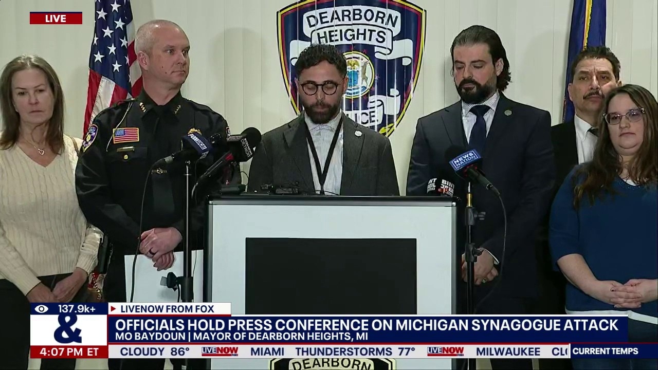 On Friday, Dearborn Heights Mayor Mo Baydoun and officials held a press conference to address the community impact and regional concerns following the incident that occurred yesterday at Temple Israel Synagogue in West Bloomfield.