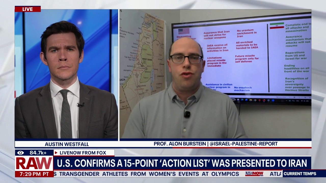 We are now watching as President Donald Trump announces a call for Iranian leaders to engage "before it is too late, because once that happens, there is NO TURNING BACK." Trump's post came a day after he claimed a deal with Iran is around the corner. The United States has reportedly pitched a 15-point ceasefire plan that was eventually rejected. LiveNOW’s Austin Westfall is speaking with Prof. Alon Burstein from the @Israel-Palestine-Report, who is helping us to understand the different statements released by Iran and the U.S. on where negotiations stand.