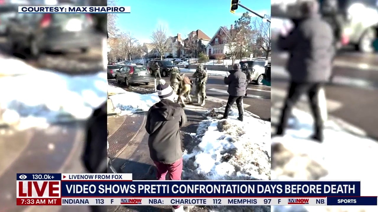 A newly released video shows 37-year-old Alex Pretti confronting federal immigration officers on a Minneapolis street 11 days before he was fatally shot in another encounter with Customs and Border Protection agents. Another angle of the video shows Pretti seemingly kicking a car before clashing with the agents.