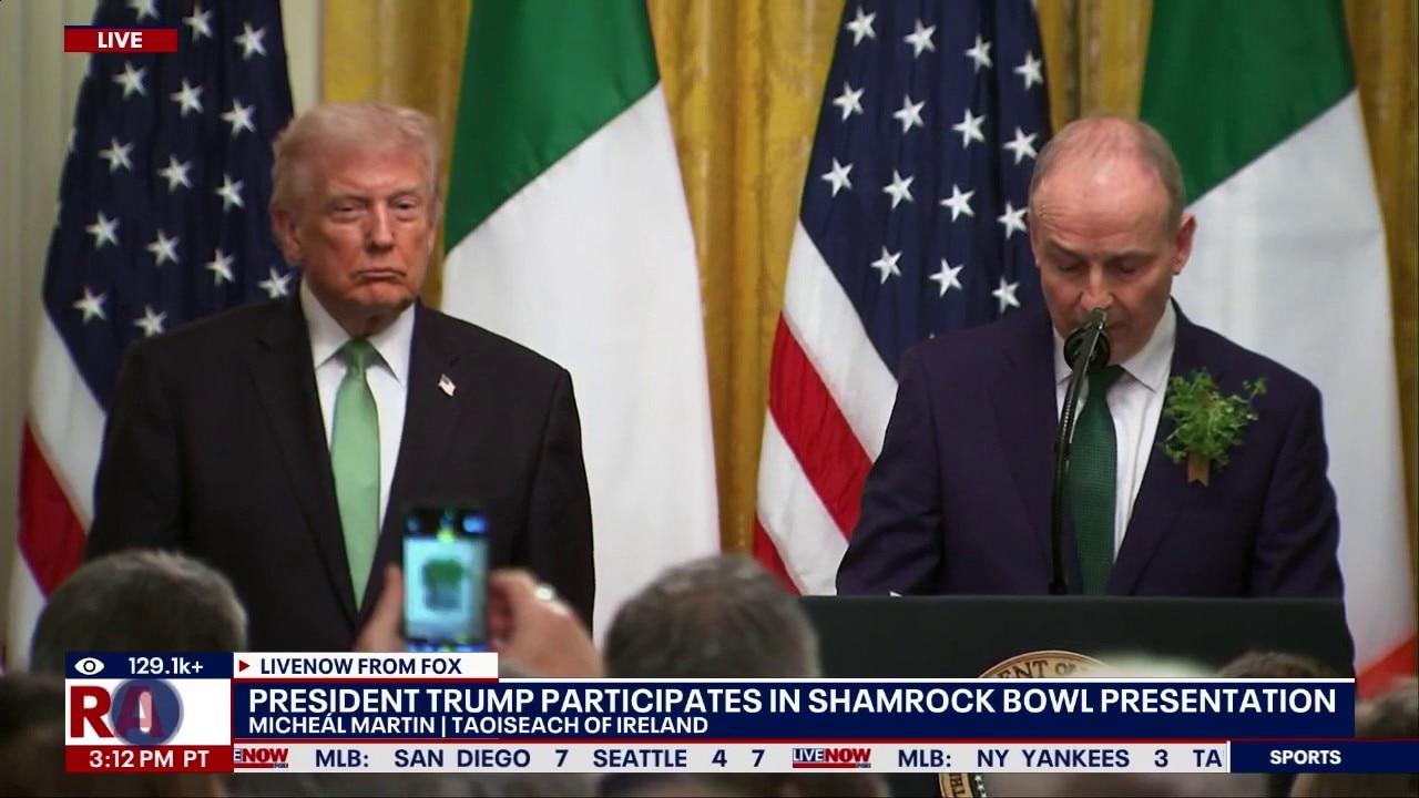 We are watching as President Donald Trump and Irish Taoiseach Micheál Martin are taking part in the annual Shamrock Bowl presentation. This event at the White House is considered by many to be a St. Patrick’s Day tradition. First starting in 1952 during the Truman administration, the event is meant to represent the extended diplomatic ties between the United States and Ireland. Part of the ceremony includes Martin presenting Trump with a bowl full of shamrocks.